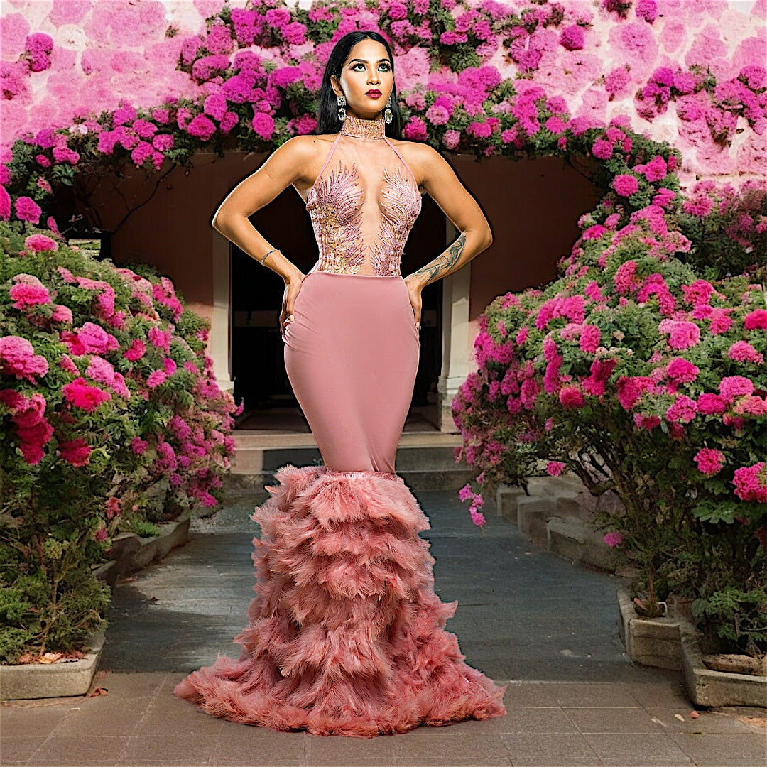 This elegant gown will make you feel like a true fashion icon. Its intricate embroidery and feather detailing will turn heads at any event.
