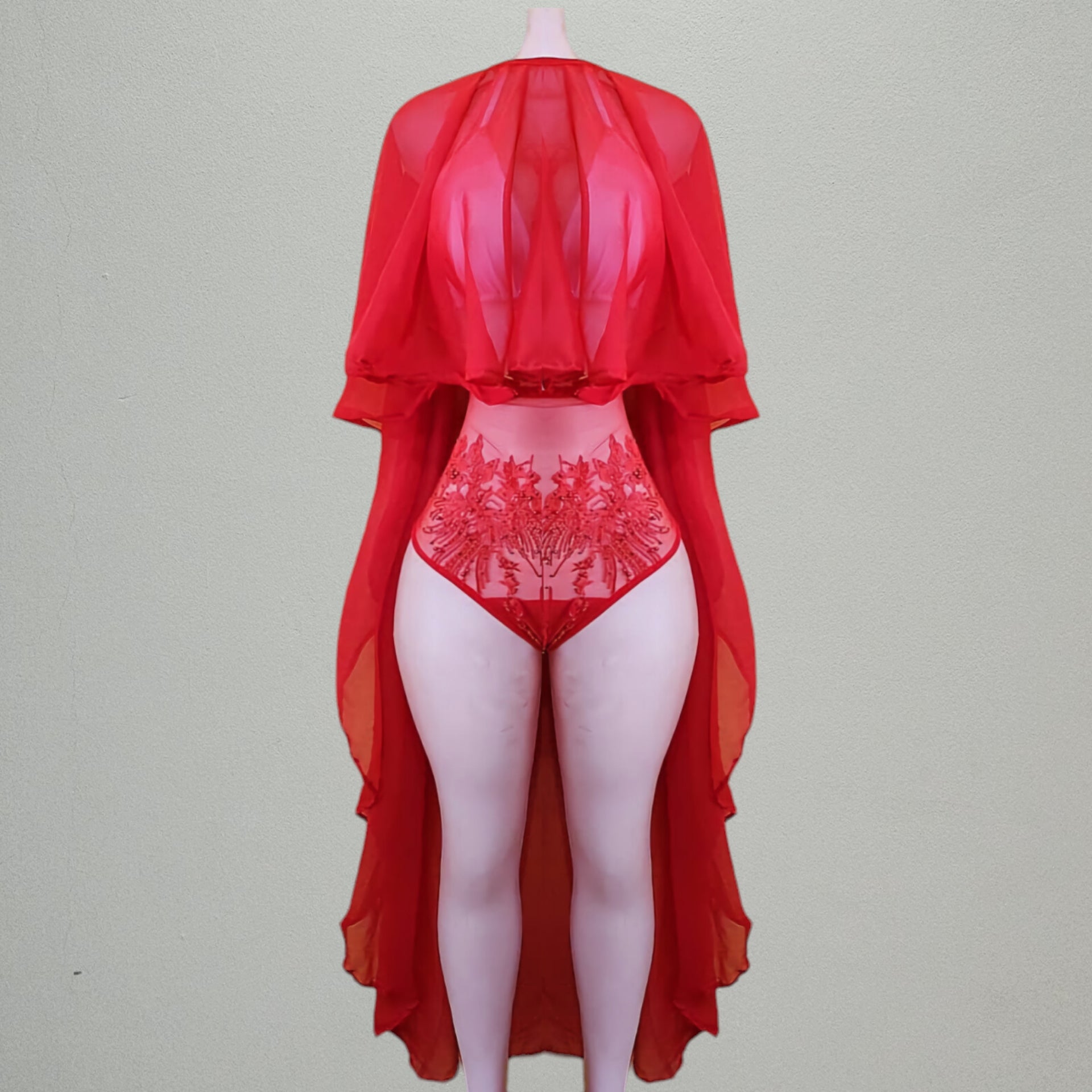 Camparie cover up is made with Sheer chiffon fabric. Complete your beach-ready look, with this chiffon cover up that is long at the back and short at the front. This cover up is perfect for those moments when you need to step away from the sun or want to grab lunch with friends. Made from lightweight material, it's easy to pack in your beach bag without taking up too much space!