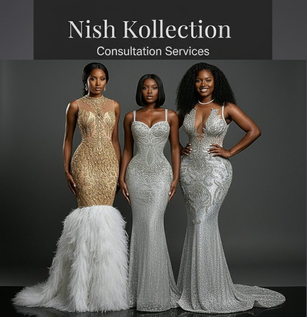 Hi, welcome to Nish Kollection. Wedding Dress Consultation fee must be paid before meeting is held. Consultation fee is NON REFUNDABLE. Bridal Gown Consultation can be done by phone via WhatsApp text or online email. This will consist of getting your measurements (if you are unaware of them). There will be a discussion of the design that MUST be from Nish Kollection unless decided otherwise with the designer. You have the option to customize that gown. Clients should come prepared with details on how they want the dress to look. Decide on a wedding date and when to receive the designer wedding gown consultation. Once a design is agreed upon, the order can be placed. Once confirmed, orders cannot be canceled or refunded. Deposits are NON REFUNDABLE. Please be sure before making payment.