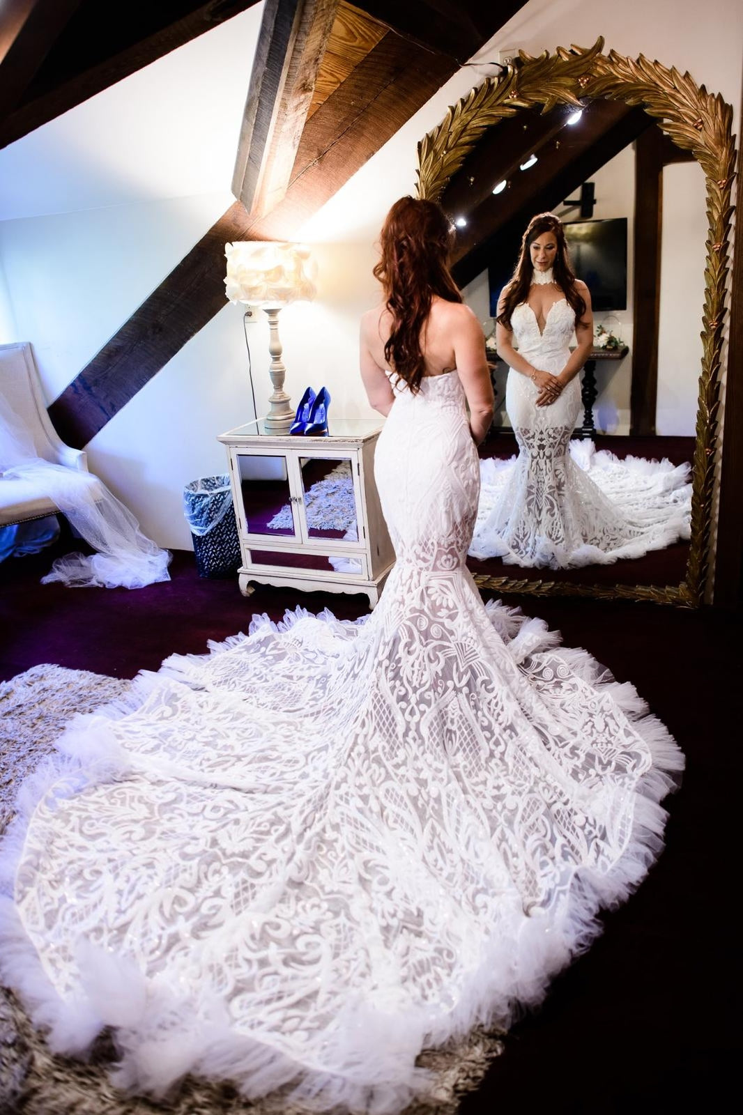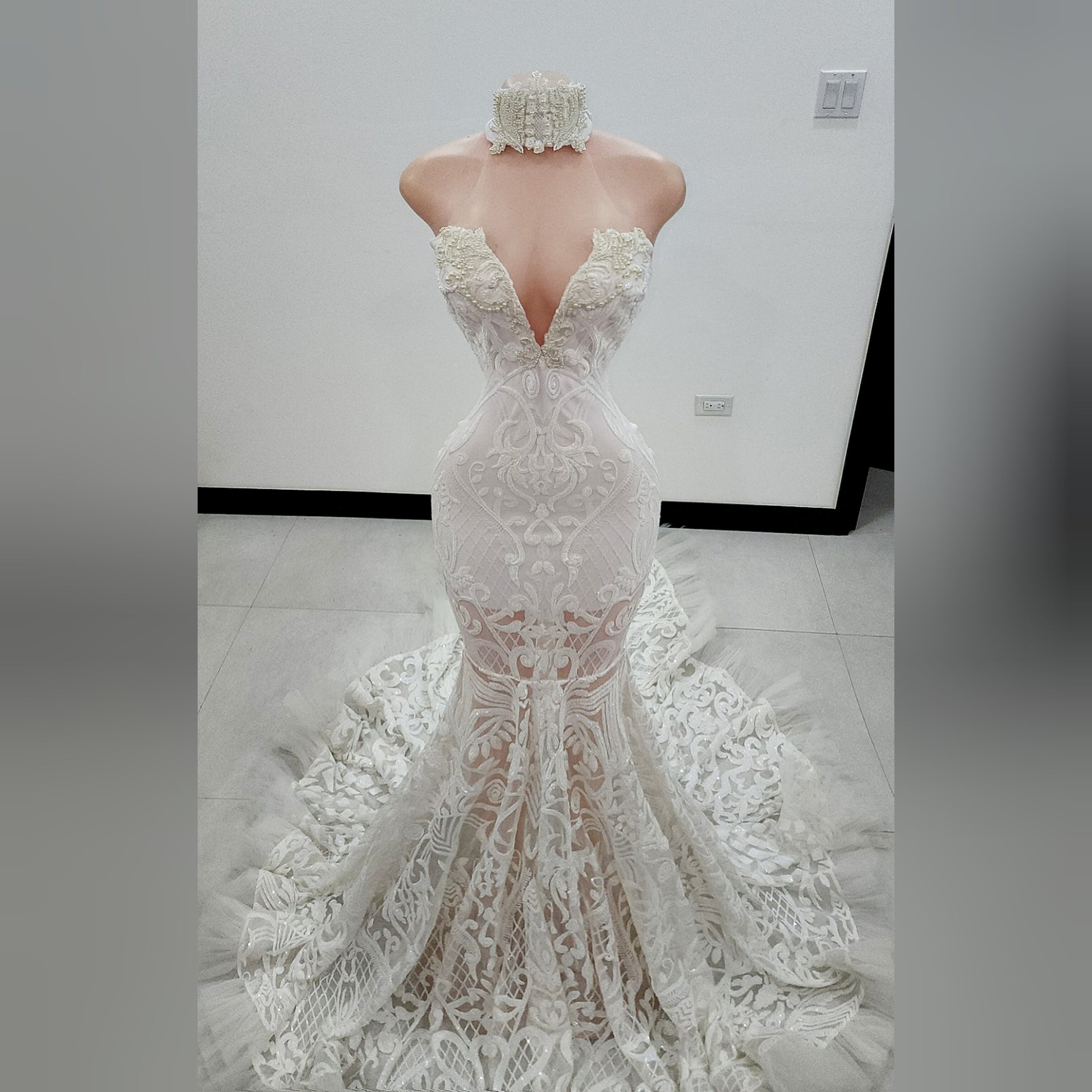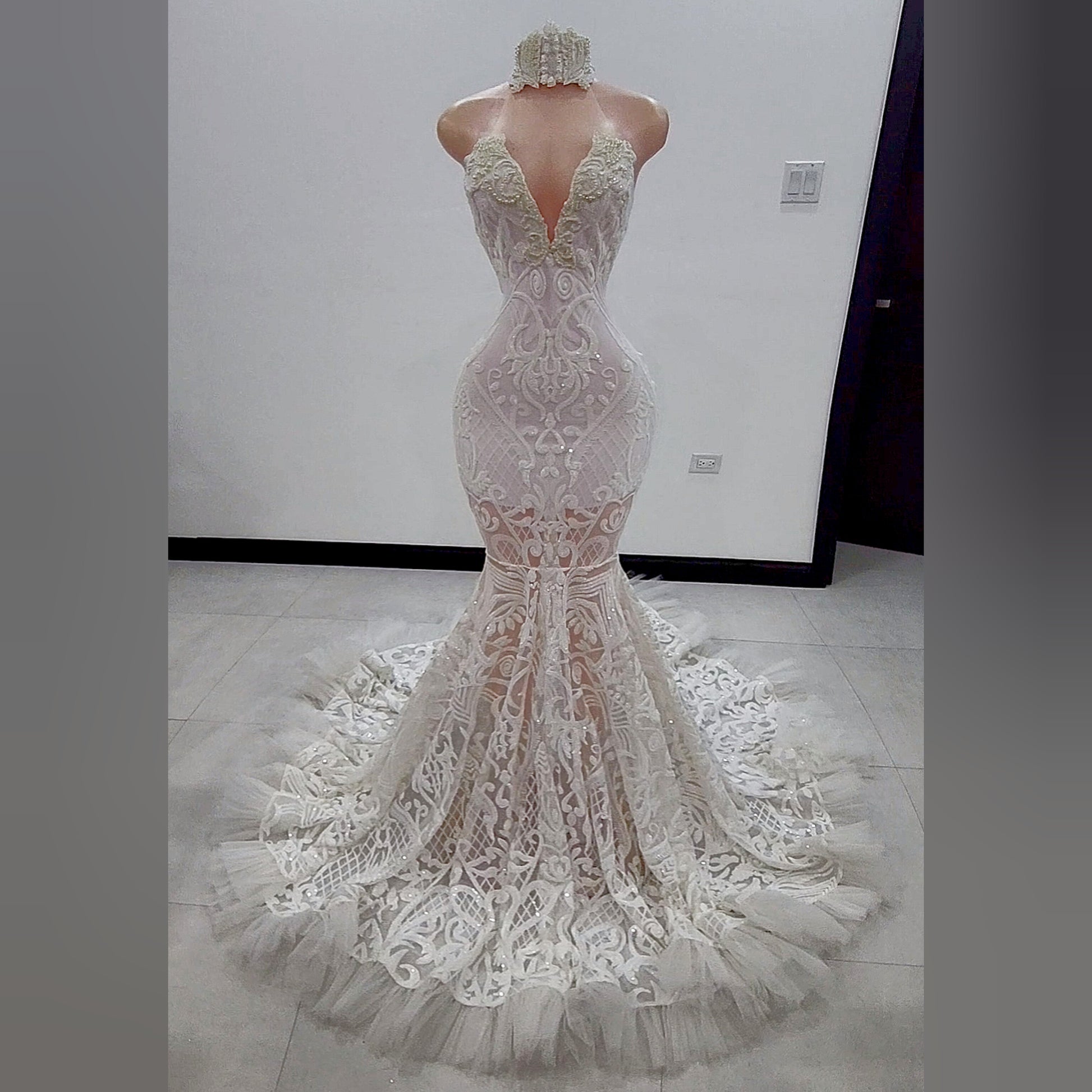 - Tulle mermaid gown fabric drapes beautifully at the end, creating an ethereal look.