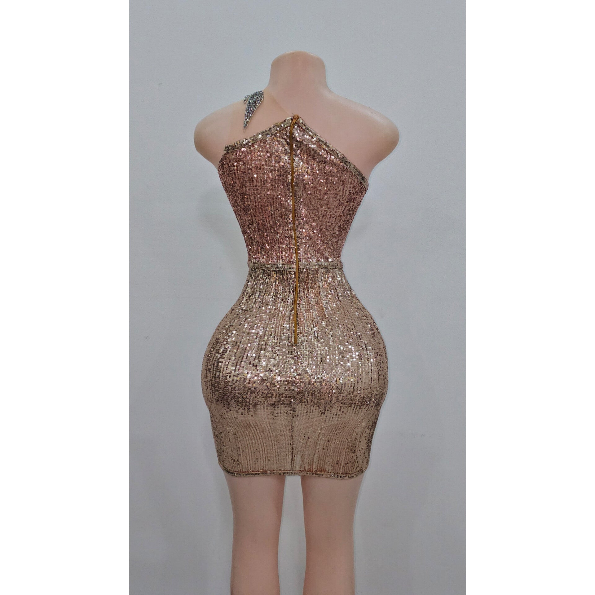 Diamond Goteo Rhinestone Cocktail dress is everything. Made with a sequin material and rhinestones at front, at the back we decided to complement the dress with a sequin a solid stretch material.