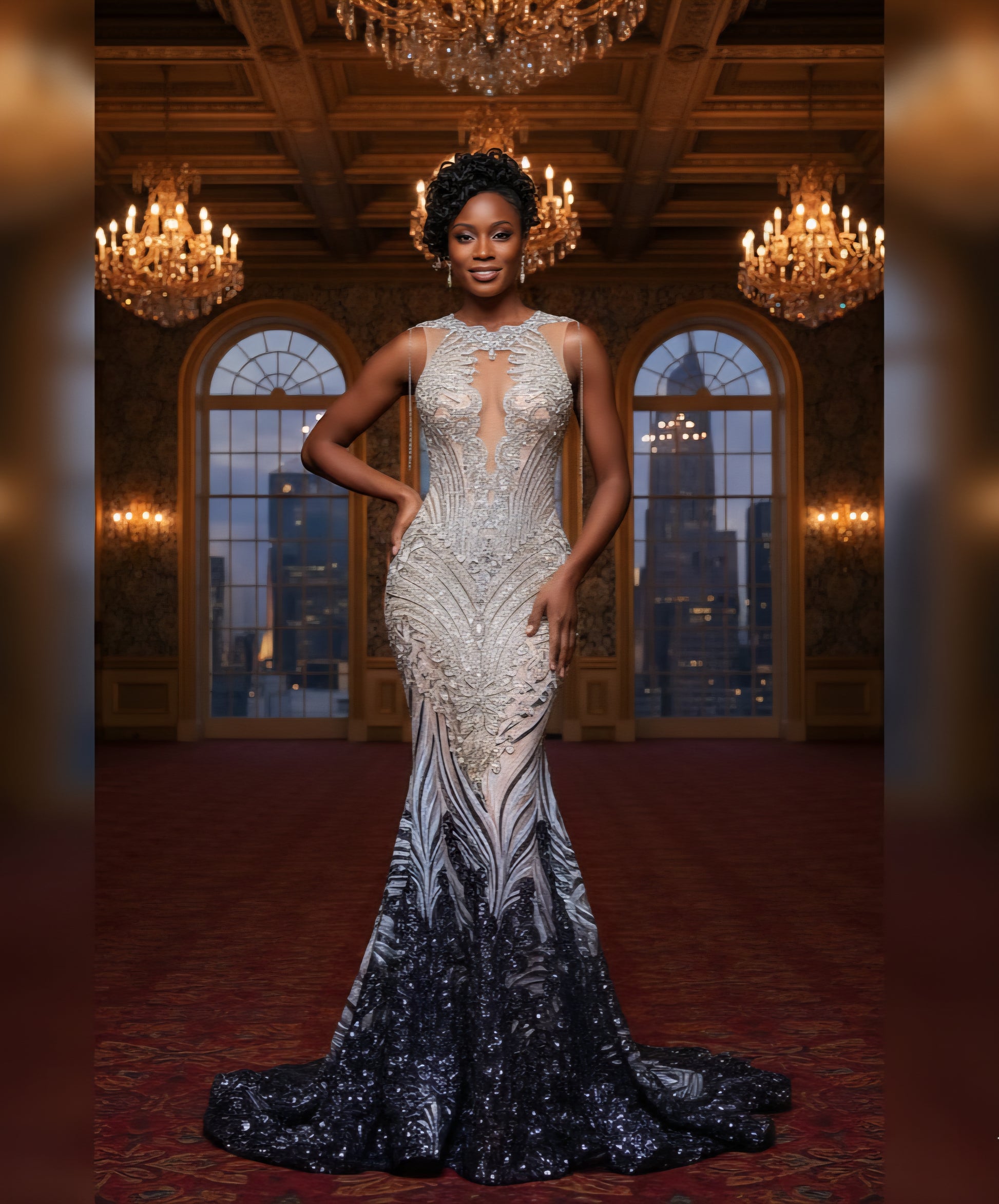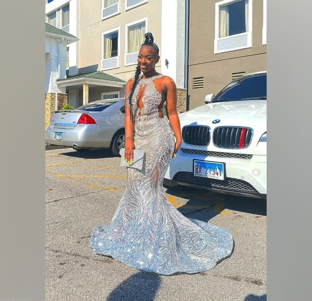 The gown's sequin material not only catches the light beautifully, but also provides a unique texture that sets it apart from other formal gowns. The dress's mermaid cut is both feminine and flattering, hugging curves in all the right places.
