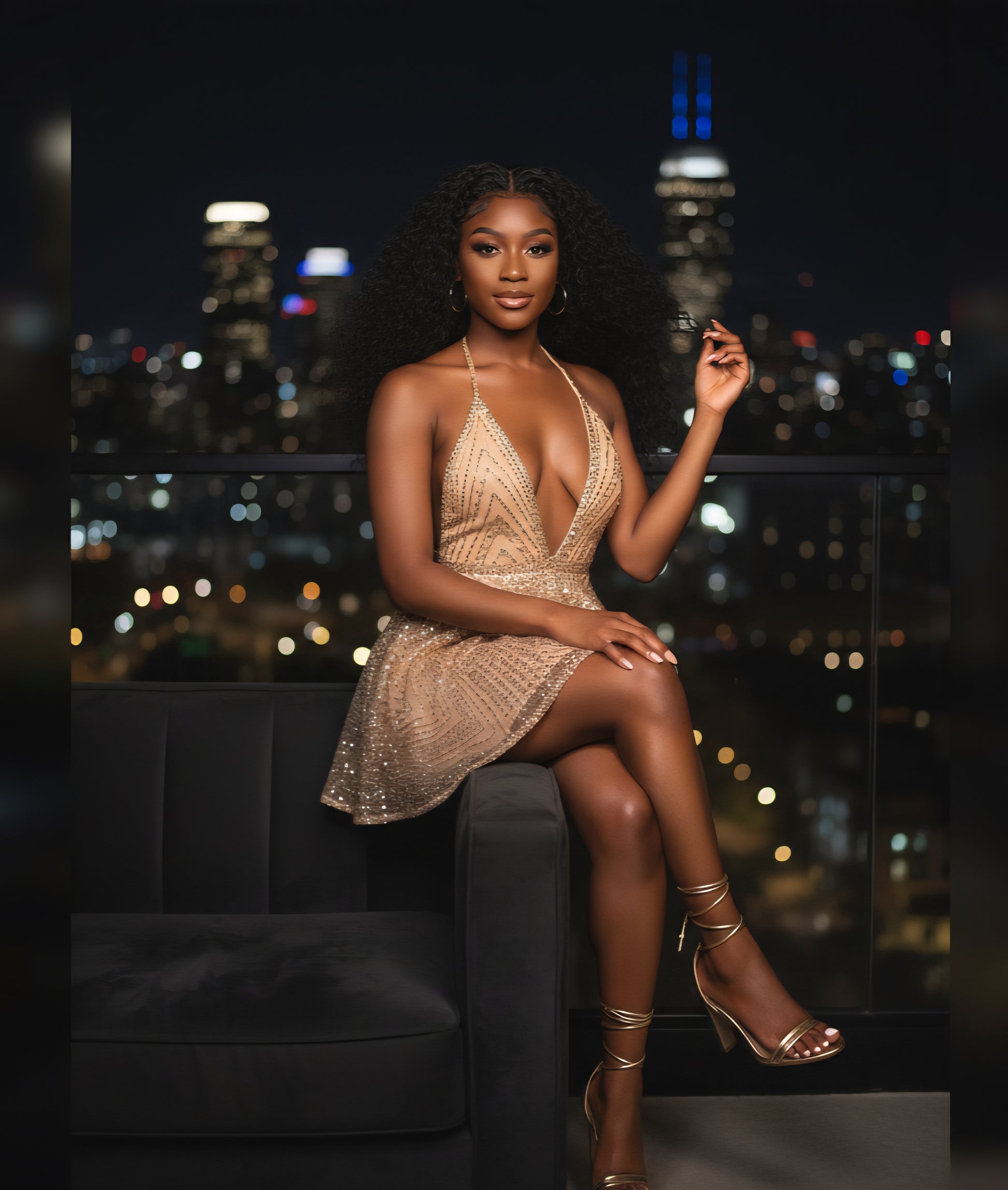 The Elisa mini skater dress is a great addition to your collection. Made from a glitter sheer mesh material with a mesh stretch undergarment underneath, this designer mini dress offers both style and comfort. If needed, the skater dress for women can be fully lined upon request. The custom dress features a zip closure at the side.