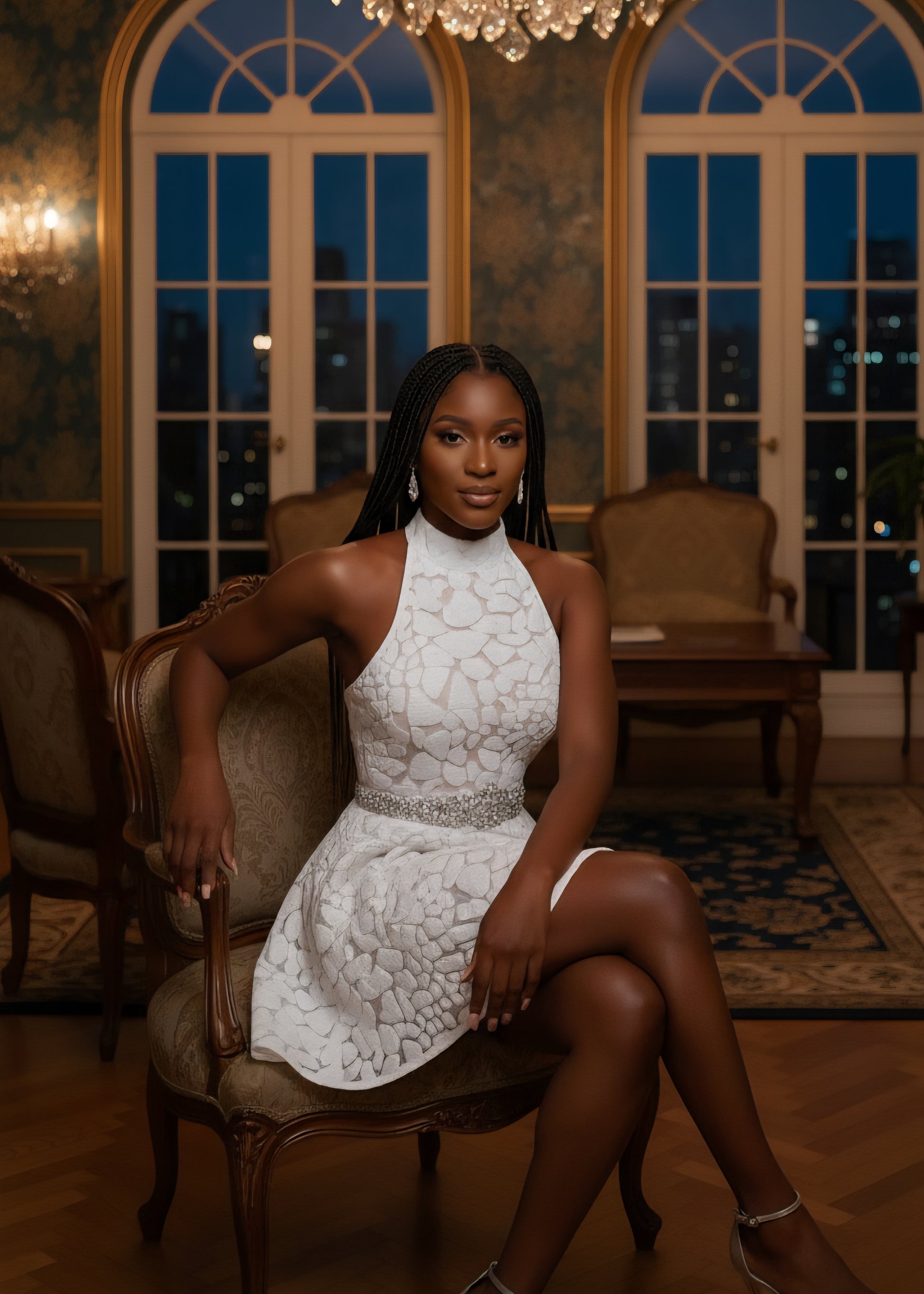 This skater short mini dress is perfect for making a statement at any event. Made with white sequins in a stunning ice pattern, this dress is sure to turn heads.