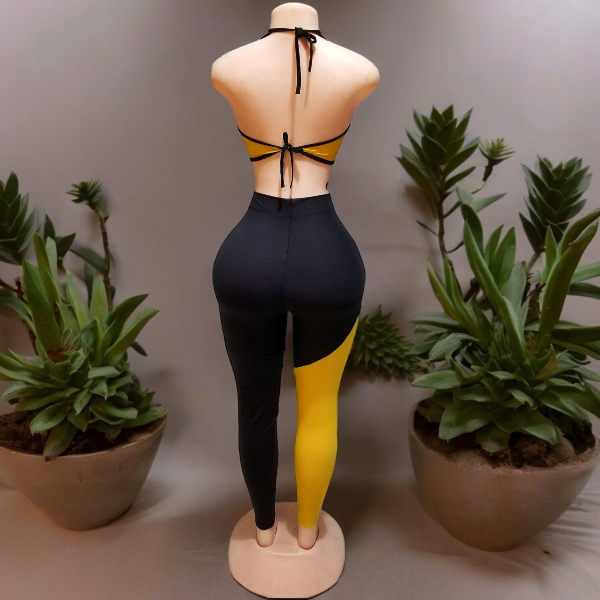 Stay on trend with this eye-catching Yellow and Black Two-Piece Set.