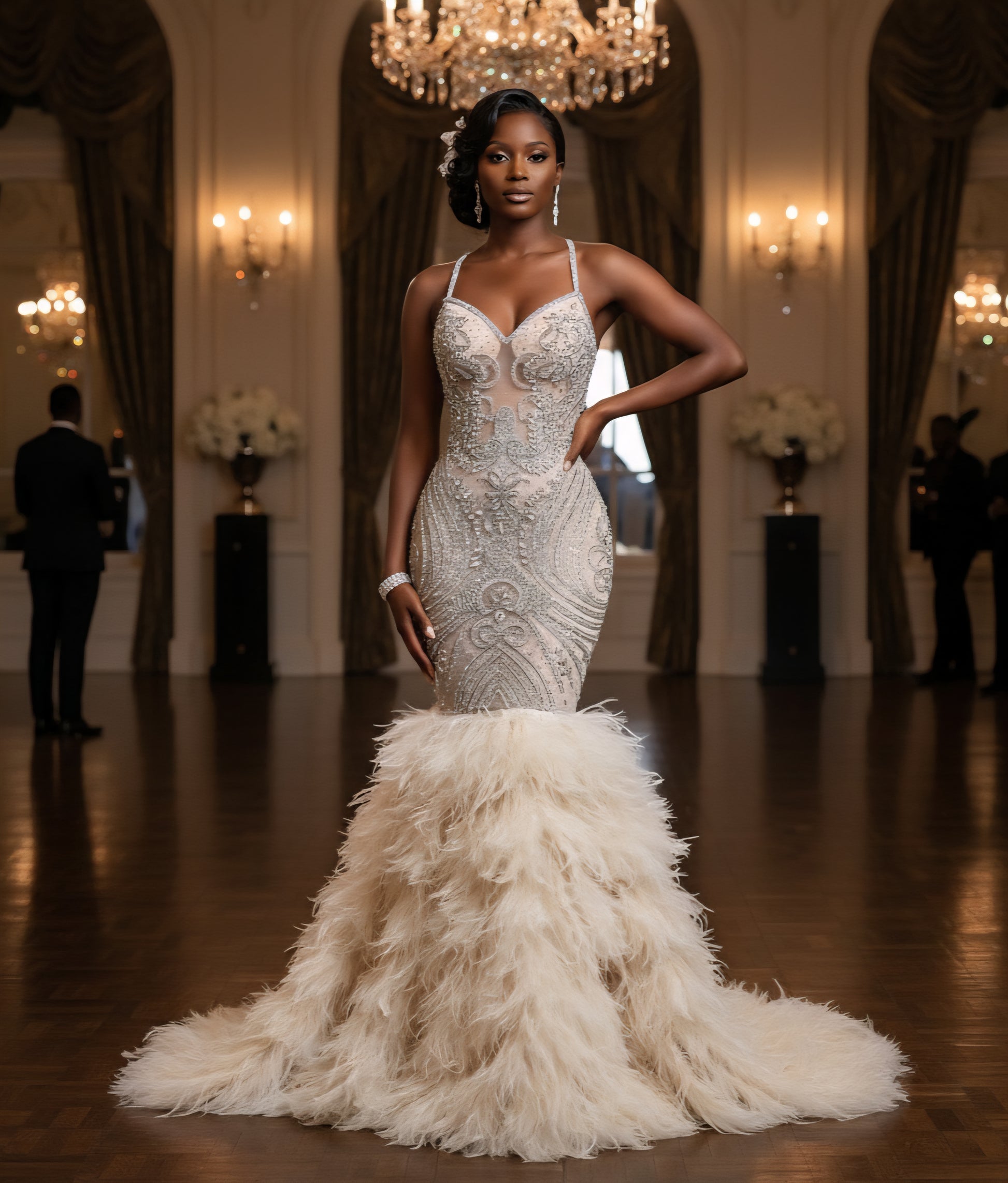 Vahalah Feather Mermaid Gown