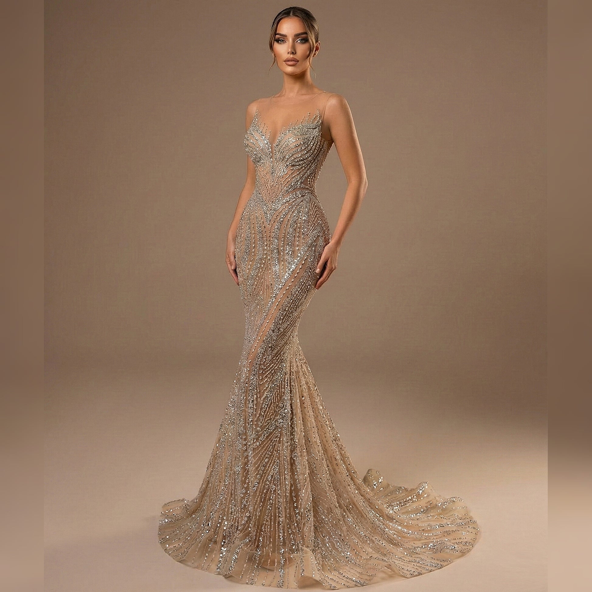 Transform your next gala, red-carpet event, or wedding celebration into a moment of pure magic. This breathtaking evening gown is designed for the woman who demands to be seen, remembered, and admired.