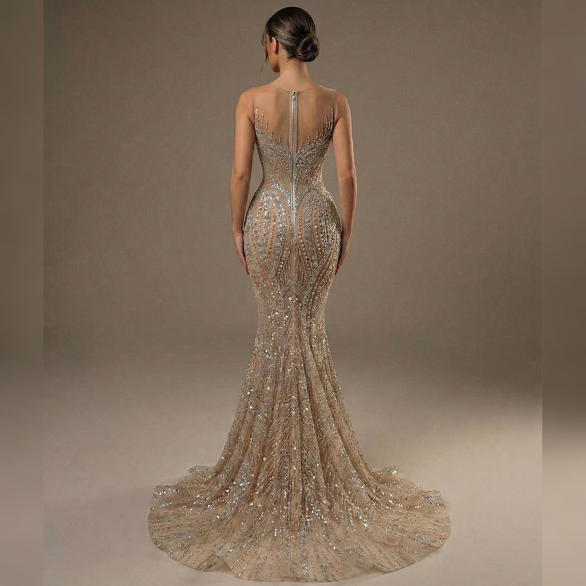 Whether you are walking down the aisle or accepting an award, the Stardust Mermaid Gown offers a regal presence that commands the room without saying a word.