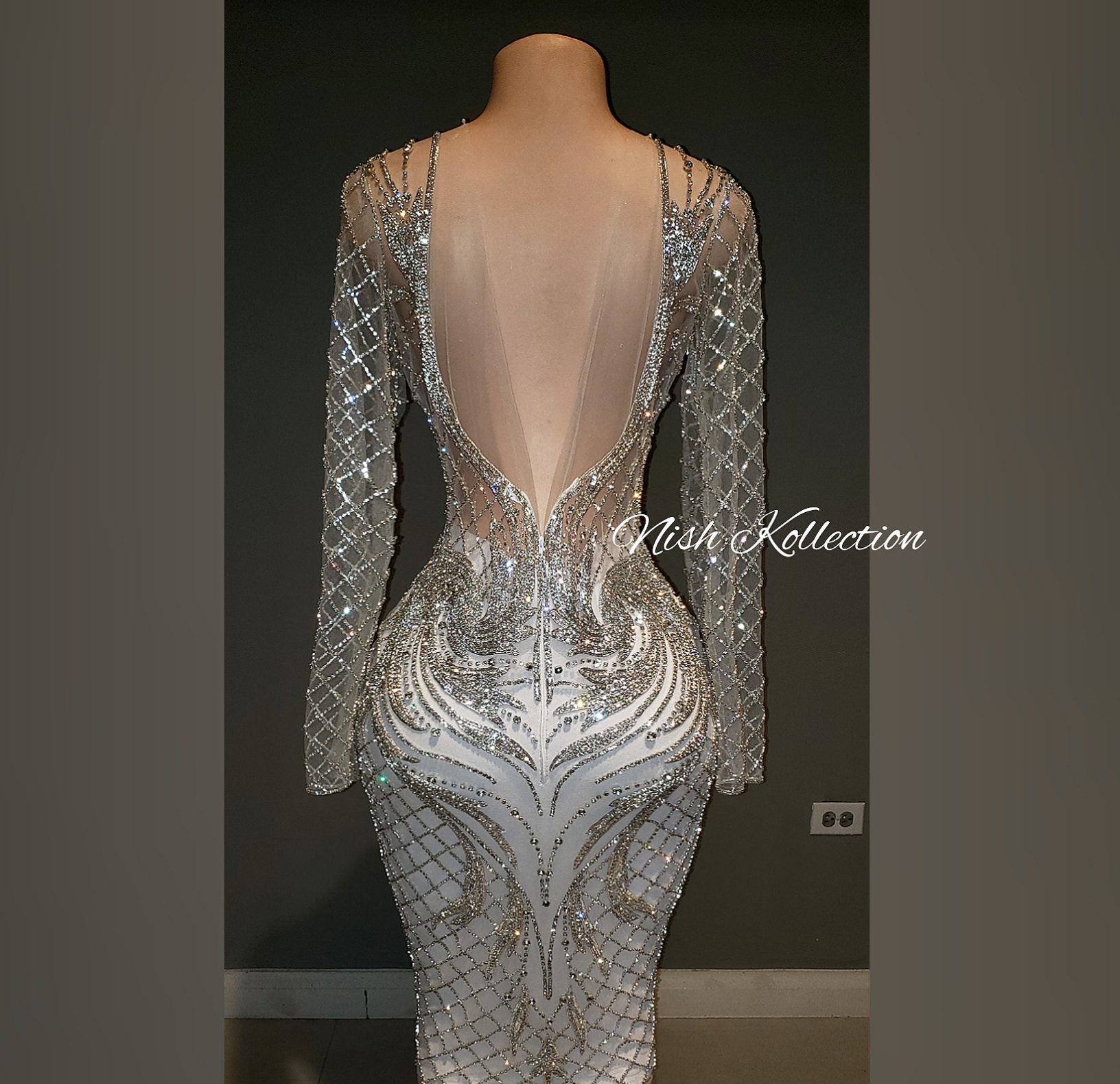 Full Rhinestone Embellishment: Every inch of this dress sparkles and shines with intricate rhinestone detailing, ensuring that you'll turn heads all night long.